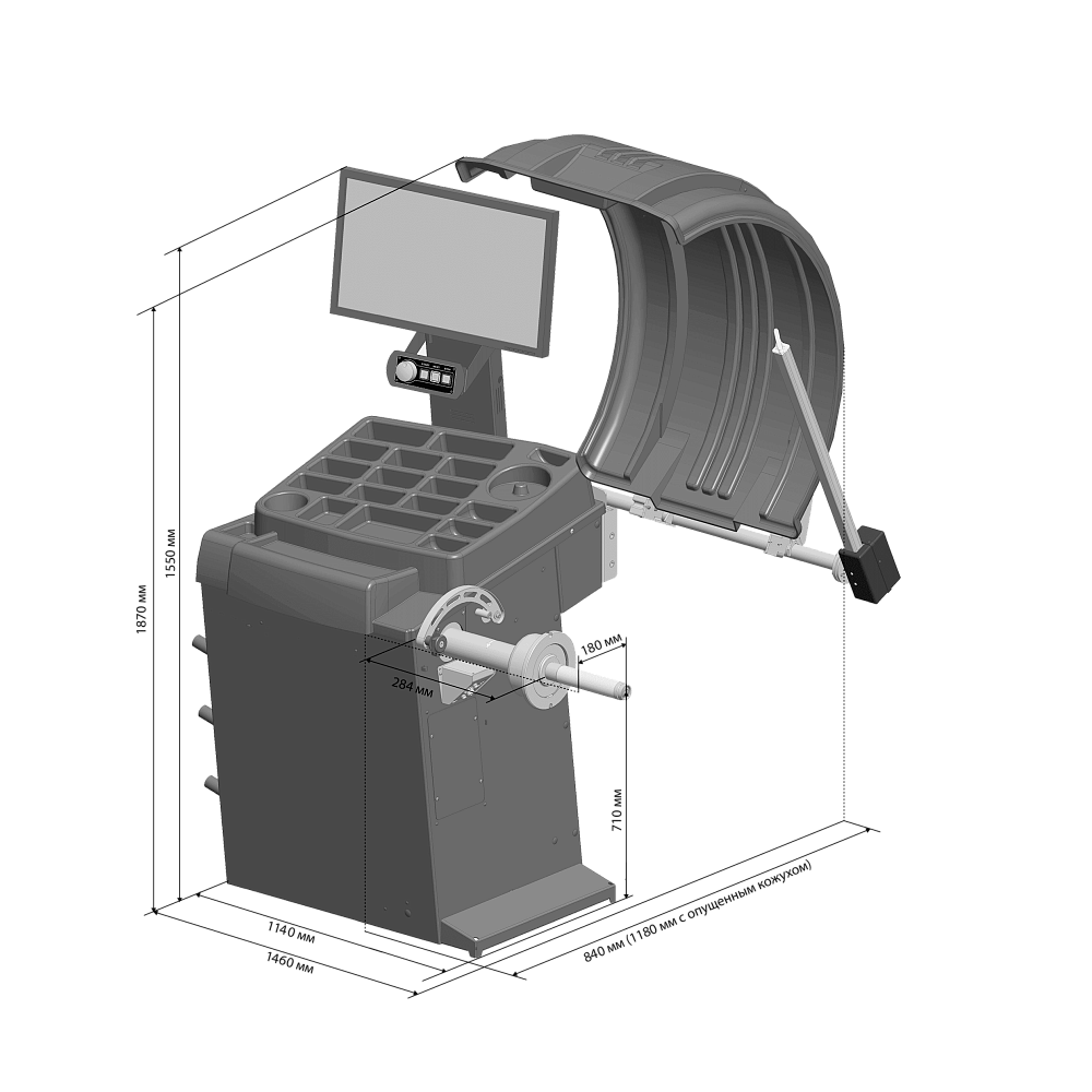 • Вал станка смещен к оператору. Вылет вала максимальный, удобно обслуживать большие и широкие колеса