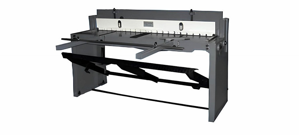 Подъем балки с верхним ножом осуществляется пружинами. Простота конструкции обеспечивает долговечность и неприхотливость станка. Для более точного расположения листа на рабочем столе станка, предусмотрены передние поддерживающие штанги, по которым перемещается передний упор. Этот элемент удобно использовать при подаче полосы листа из рулона в гильотину с тыльной стороны.