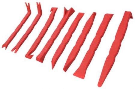 Предназначен для демонтажа декоративных элементов и обшивок салона. Изготовлен из специального пластика, обладающего повышенной прочностью. Усиленная конструкция позволяет выдерживать большие нагрузки без деформации инструмента. Исключают вероятность повреждения пластиковых и деревянных элементов при их демонтаже. Наличие лопаток различного профиля, делает набор универсальным.