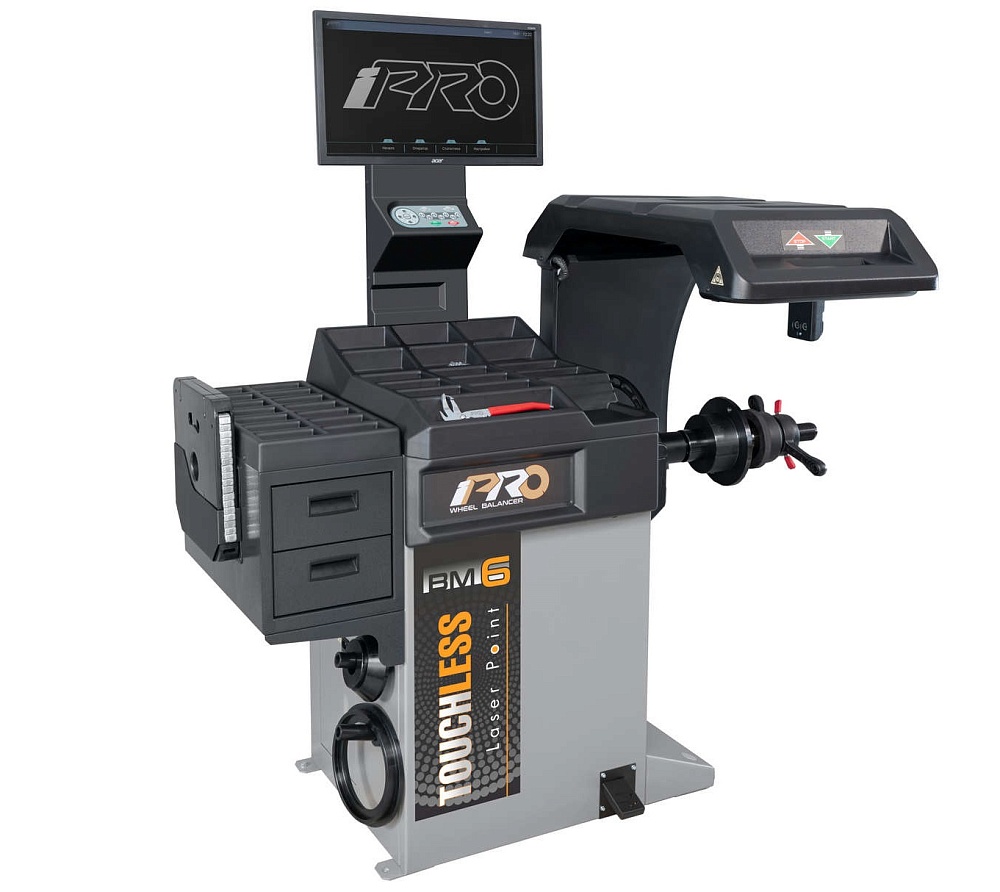 Стенд балансировочный модель iPRO BM6. Автоматический. Цветной монитор 24’’ для графического отображения всех процессов и настроек. Микрокомпьютер с мощным процессором. Высокая точность измерений. ОС Android. Качественная 3D-графика. Возможность обновления ПО. Эргономика и удобство использования. Измерение ширины колеса производится ультразвуковым сенсором. Электромеханический тормоз. Автоматический доворот колеса до места установки груза. Лазерным линейный указатель. Возможность установки груза линейкой. Установка грузов на «6 часов» и «12 часов». Лазерный 3D сканер позволяет производить измерения параметров колес в полностью автоматическом режиме. Диаметр обода балансируемого колеса 12-28". Вал Ø - 40мм.