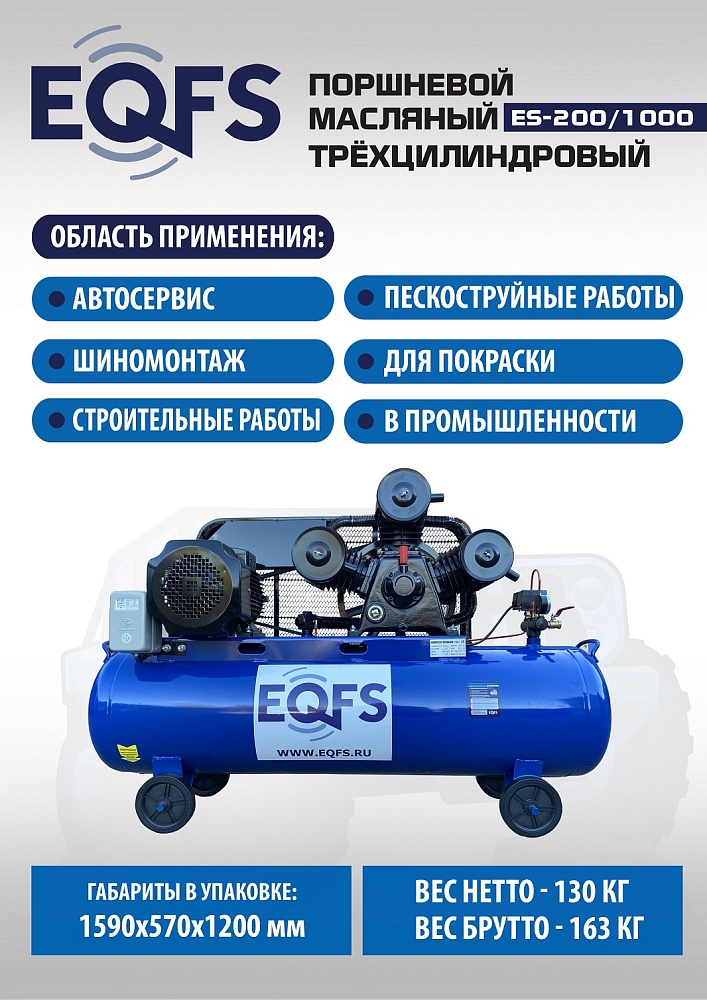 ES-200/1000 Компрессор поршневой трехцилиндровый 200 литров купить в Челябинске цена ✅ - Все для СТО