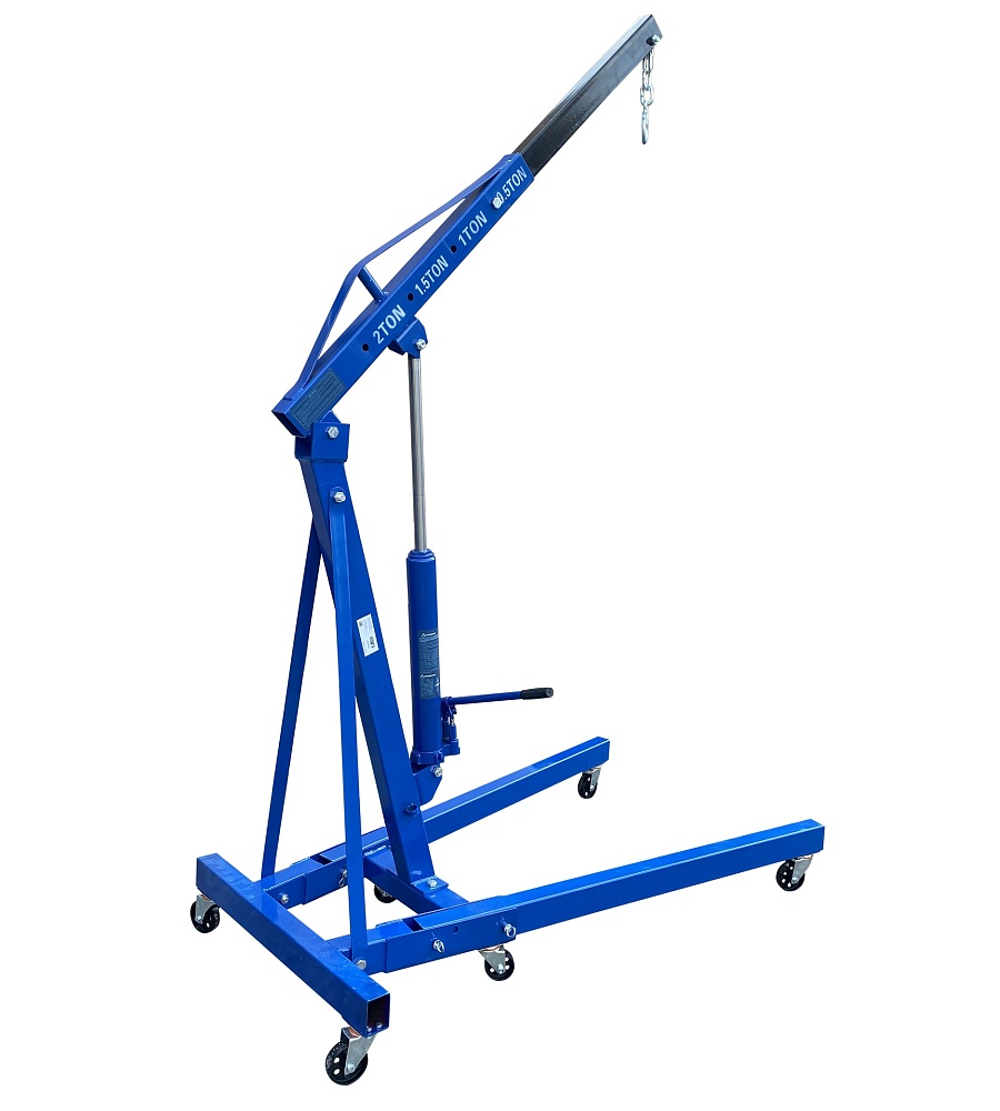 Для профессионального применения. Вес: 74,5 кг. Складной. Грузоподъемность 2т. Двухплунжерный насос-быстрый подъем. Рабочий диапазон стрелы 900-1510 мм. Высота подъёма крана от пола цеха – 0÷2420 мм. Для подъема и транспортировки автомобильных узлов, агрегатов и любых других грузов как внутри помещения, так и на улице. Вынос стрелы регулируется в соответствии с максимальной грузоподъемностью крана – 500-1000-1500-2000кг.