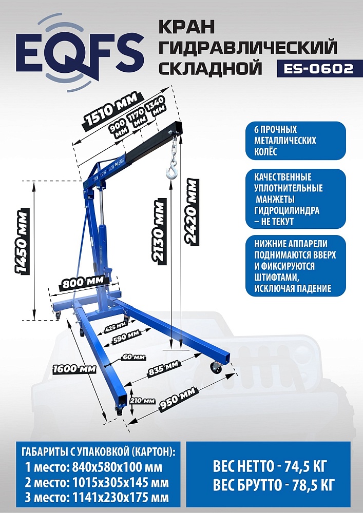 ES-0602 Кран гаражный, 2 т купить в Челябинске цена ✅ - Все для СТО