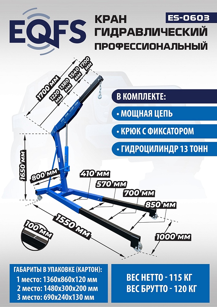 ES-0603 Кран гаражный, 3 т купить в Челябинске цена ✅ - Все для СТО