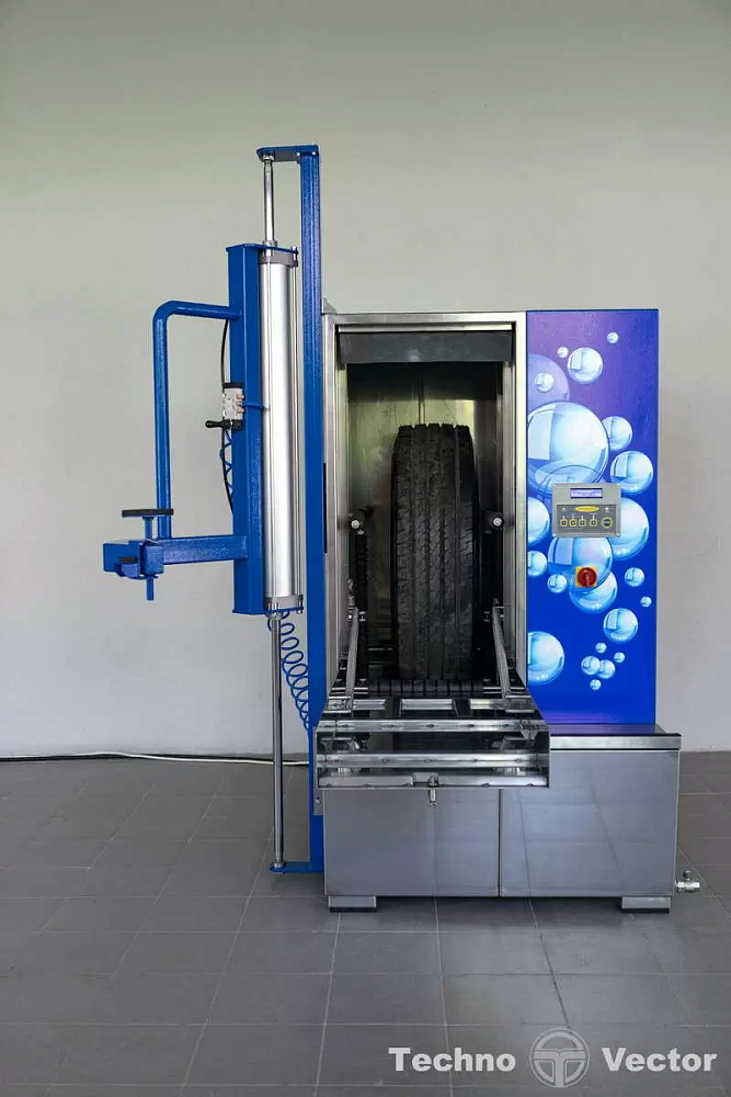 Автоматич.мойка колес гранулами.Диам.колес 560-850 мм, шир.колес 135-365 мм. Уменьш.габар. ширина