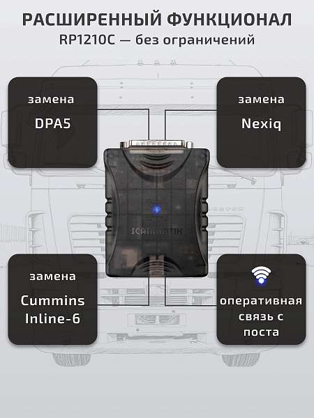 Реализация стандарта RP1210C - без каких либо ограничений. SM3 полностью заменяет приборы DPA5/Nexiq/Inline-6 с поддержкой всех протоколов и гораздо более шустрым и удобным соединением по Wi-Fi.