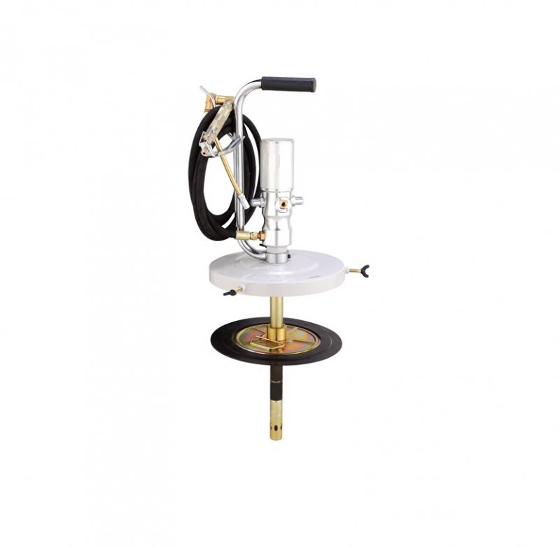 Жесткий алюминиевый наконечник позволяет производить смазку в труднодоступных местах автомобилей и оборудования. Фиксация насоса с крышкой к смазочному баку производится с помощью металлических защелок с резьбой.