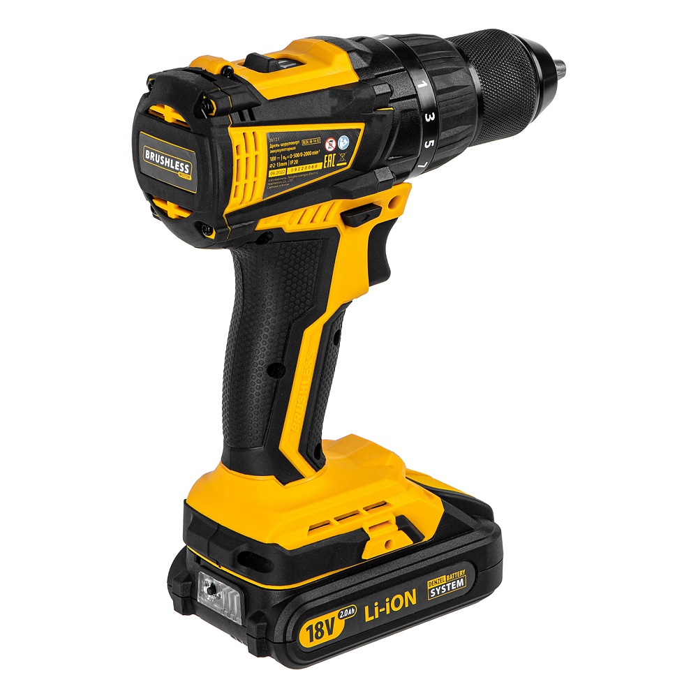 Дрель-шуруповерт аккумуляторная, бесщет. BLDL-IB-18-02, Li-Ion, 18 В, 2 акк. Denzel купить в Челябинске цена ✅ - Все для СТО