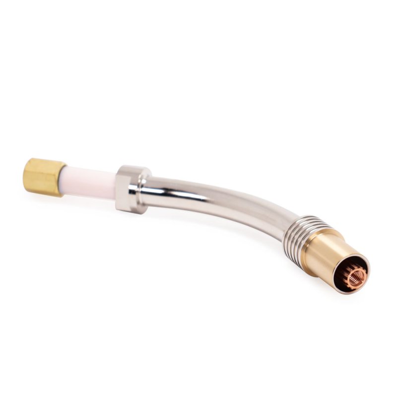 Гусак – заменяемая часть горелки для полуавтоматической сварки. Замена гусака может потребоваться в случае выхода из строя данного элемента либо необходимости выполнения специфичных сварочных задач. На гусак устанавливаются сопло и наконечник. В рукоятке горелки гусак подключается к силовому кабелю и шлангу подачи газа. Если горелка оснащена жидкостным охлаждением, на гусаке появляются фитинги для подключения воды.