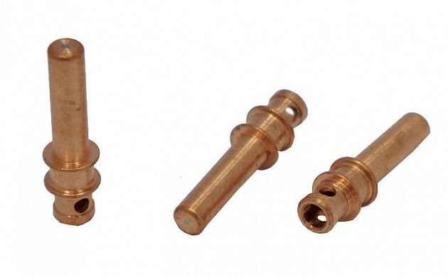 Катод - расходная часть плазмотрона. Оснастку изготавливают из сплава меди и латуни. Данный сплав обладает отличными показателями токопроводимости, высокими прочностными характеристиками, а так же способствует лучшему теплоотводу. Чаще всего для работы в нейтральных плазмообразующих средах в качестве сердечника электрода используют вольфрам, в окислительных средах применяют катоды из циркония или гафния.