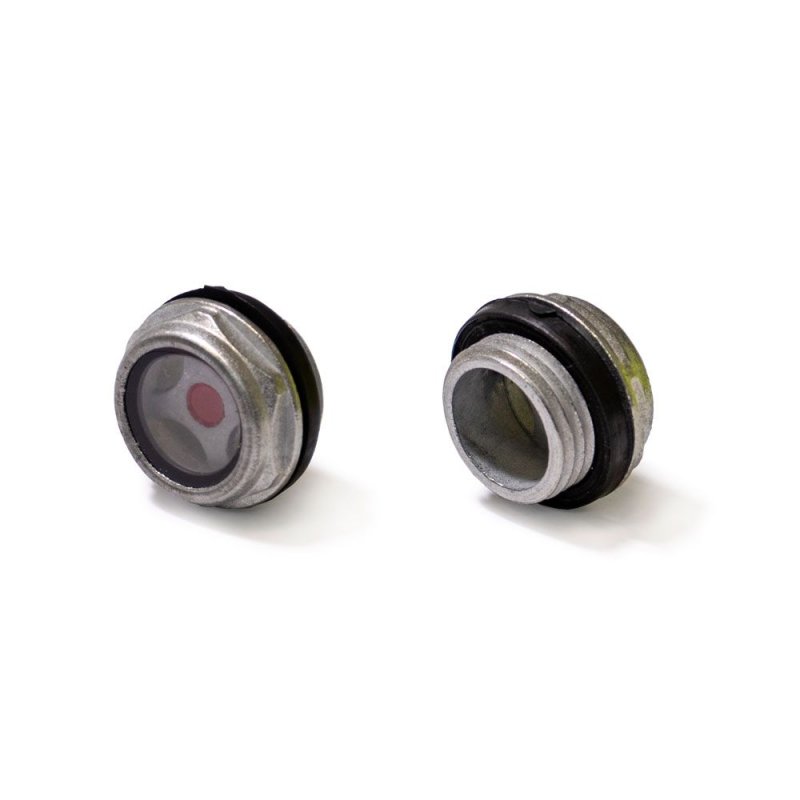 Смотровое окошко компрессоров предназначено для контроля уровня масла в картере устройства. Уровень смазки должен находиться в пределах красного круга.