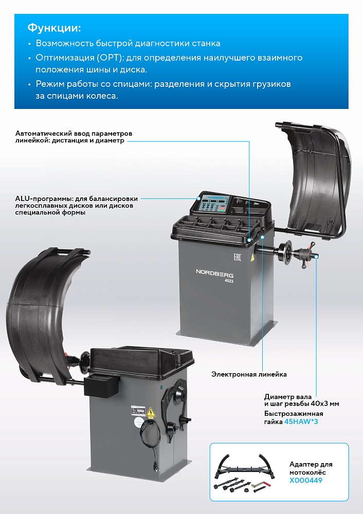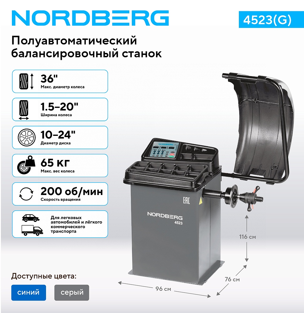 Станок балансировочный с автоматическим вводом двух параметров, серый NORDBERG 4523(G) купить в Челябинске цена ✅ - Все для СТО