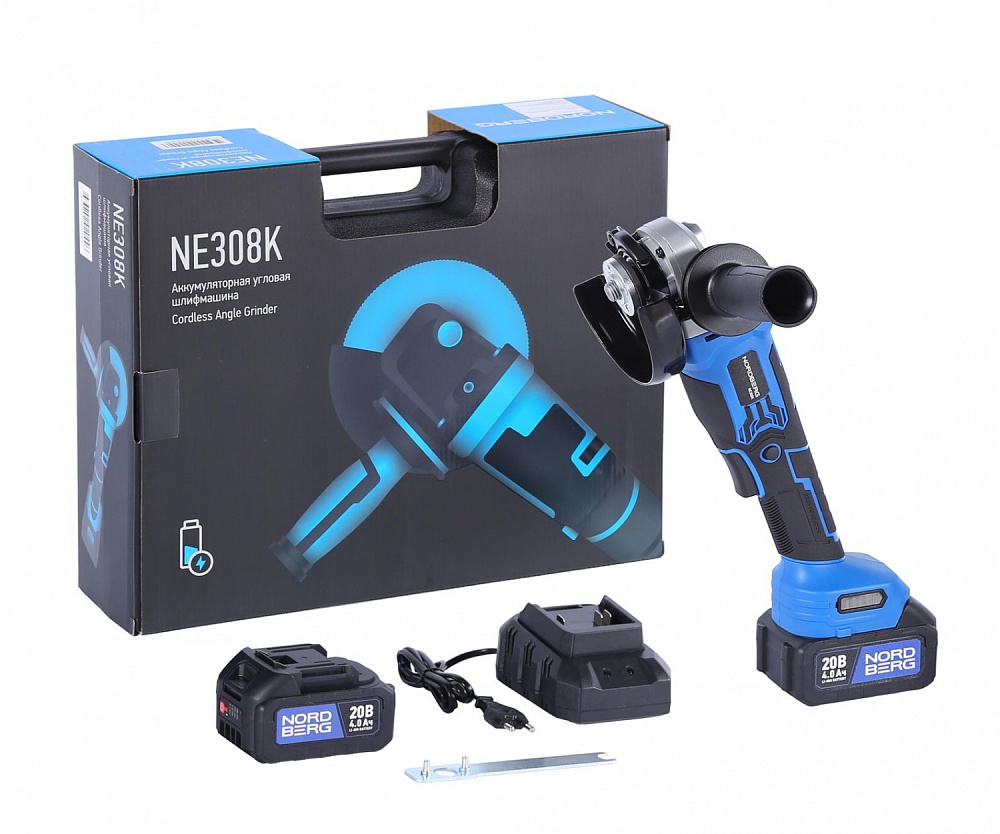 NORDBERG NE308K — аккумуляторная углошлифовальная машина (УШМ) с бесщеточным двигателем. Профессиональное решение для шлифовки, резки и зачистки различных материалов.
