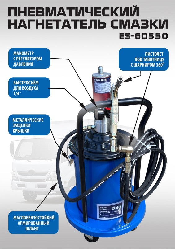ES-60550 Нагнетатель смазки пневматический купить в Челябинске цена ✅ - Все для СТО