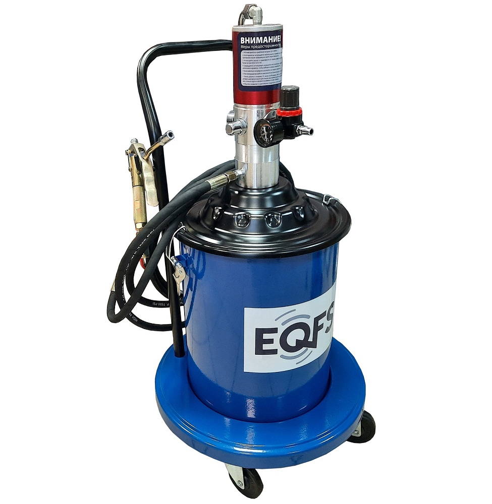 Пневмопривод. На колесах. Можно использовать на ведро. Имеет легкий вес и экономичную конструкцию для удобства перемещения и эксплуатации. Передовые технологии изготовления из материалов высшего класса, отличная производительность перекачки гарантирует долговечность и безопасность продукции в условиях работы под высоким давлением. Емкость бака 20 кг. Давление смазки 350-400 Атм. Пистолет с наконечником производительность 850 г/мин. оборудован "Z" образным шарниром для удобной и беспрепятственной работы в трудно доступных местах (вращение на 360град.) Габариты: 840X450X450 мм, вес 16,9 кг, длина шланга 5 м.