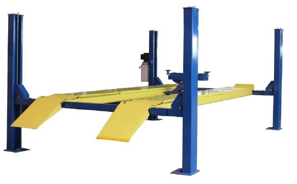 Удлиненный электрогидравлический четырехстоечный подъёмник грузоподъемностью 6,5 т для обслуживания легкового и коммерческого транспорта Оснащение подъемника дает возможность производить регулировку развал/схождения, ремонт тормозной и рулевой систем, и другие работы