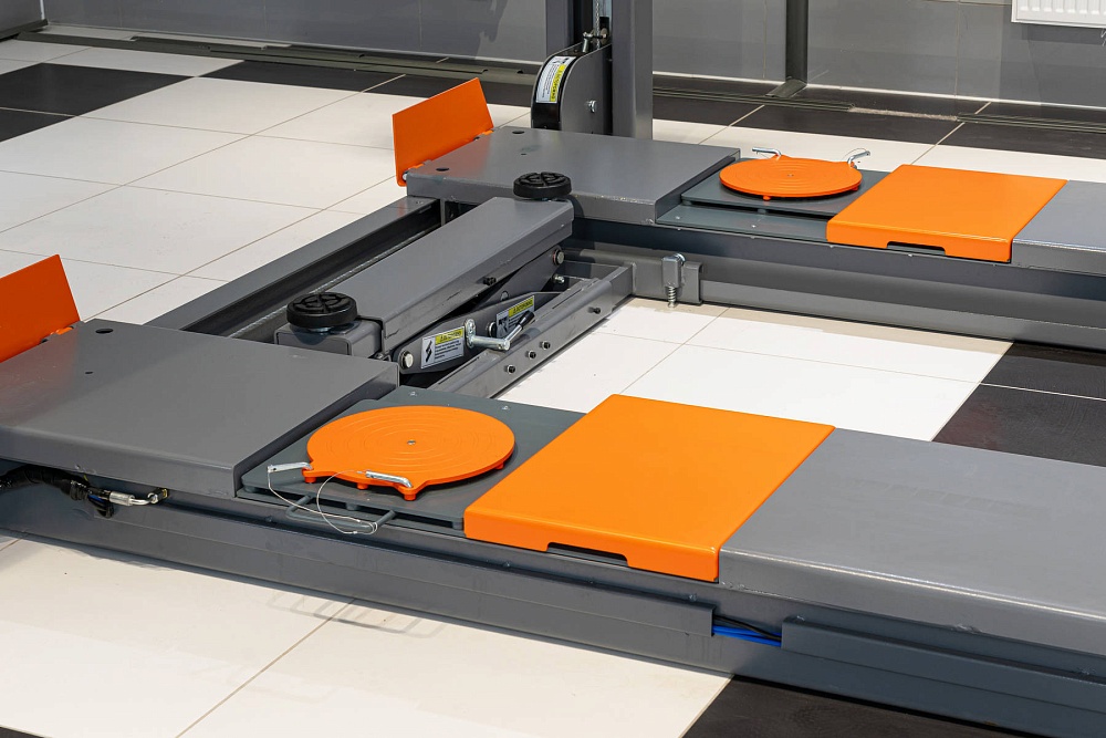 • Ниши для установки передних поворотных платформ для проведения регулировки углов установки колёс