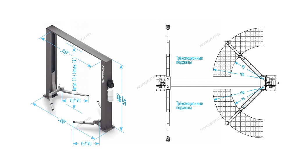 Подъемник 380V 2х стоечный 6т с верхней синхронизацией (синий) LONG NORDBERG N4122H1E-6B купить в Челябинске цена ✅ - Все для СТО