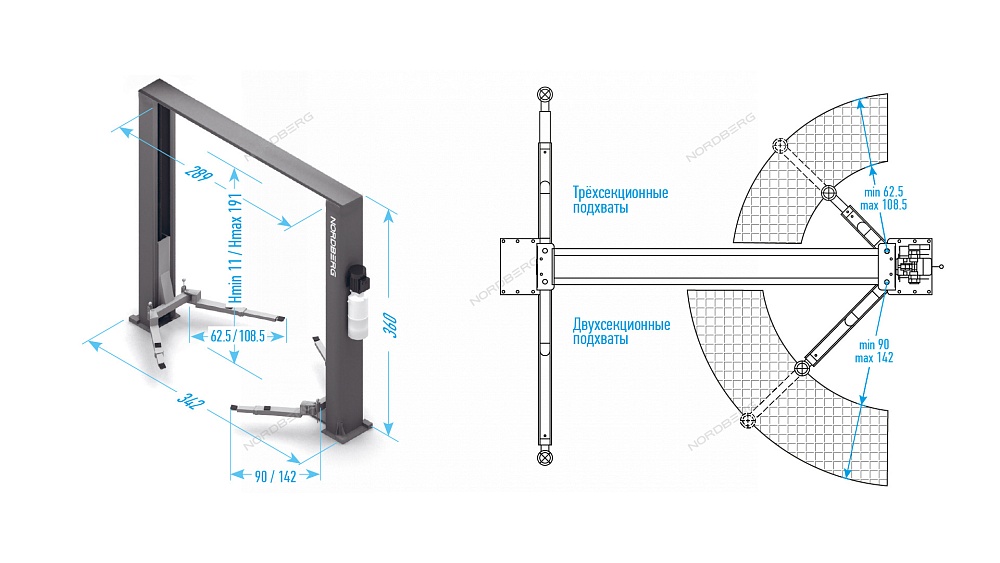 Двухстоечный подъемник NORDBERG N4120H-4B_3+2 – безопасное и надежное оборудование для проведения различных видов работ по обслуживанию и ремонту автотранспорта в автосервисах и СТО.