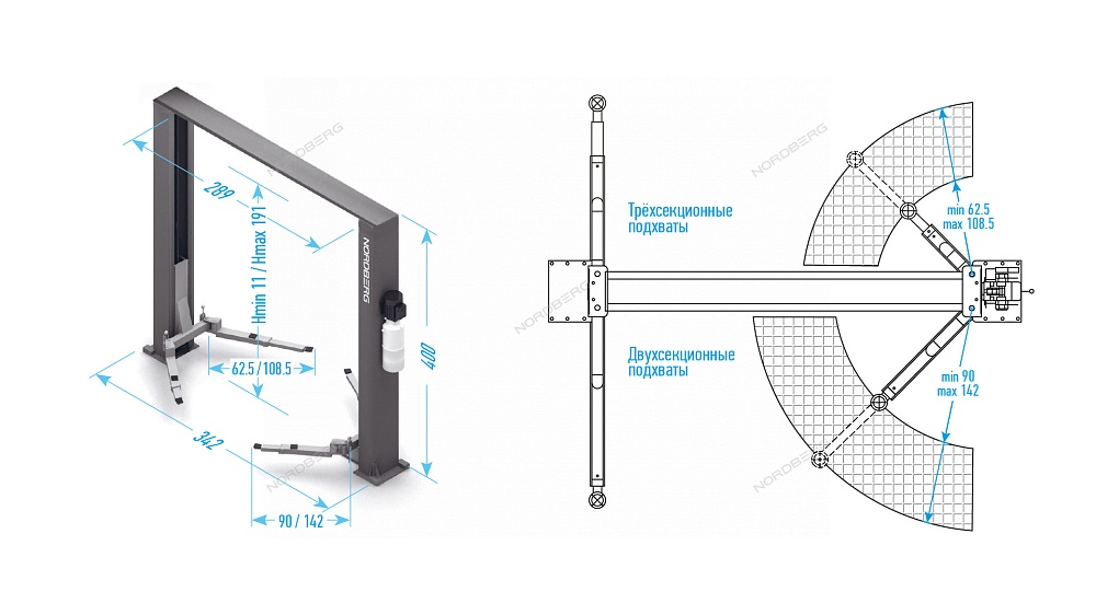 Двухстоечный подъемник NORDBERG N4120HE-4B_3+2 – безопасное и надежное оборудование для проведения различных видов работ по обслуживанию и ремонту автотранспорта в автосервисах и СТО.