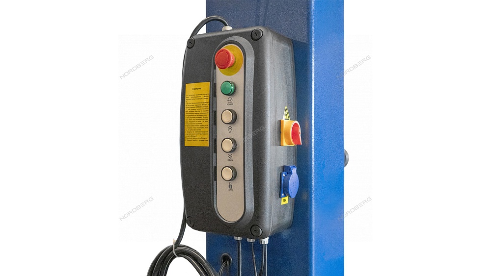 Подъемник двухстоечный 4 т, верхняя синхронизация, с электростопорами, H=3,6 м, 380 В, синий NORDBERG N4120HE-4B_3+2_380