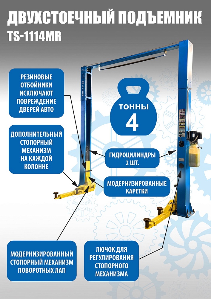 TS-1114MR подъемник 4 т, 2-х ст. электрогидравлический (2025) (220 V ТВ) купить в Челябинске цена ✅ - Все для СТО