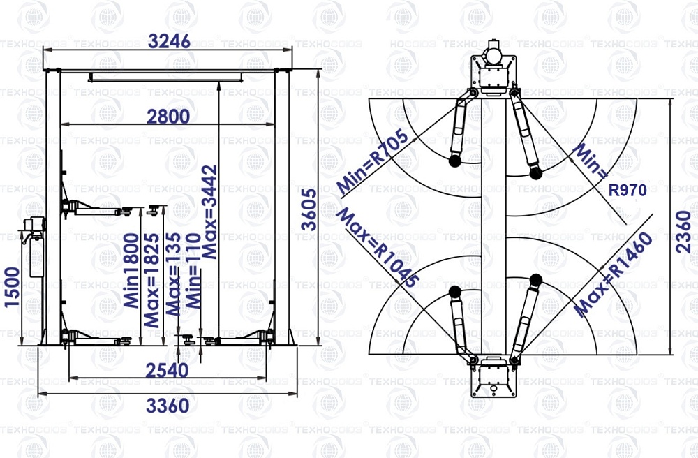 ·         Большая ширина проезда – 2540мм, позволяет поднимать широкие автомобили.