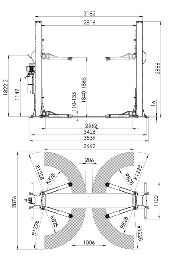 Подъёмник двухстоечный с верхней синхронизацией 4т, 380V (125-1980мм)