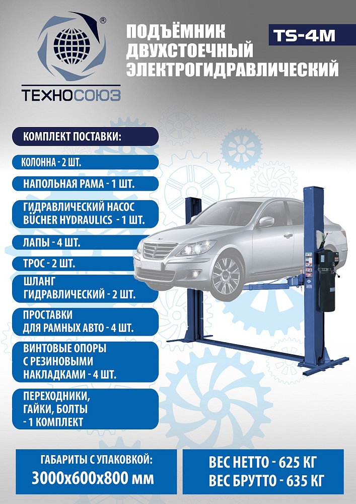 TS-4M Подъемник 2-хст. г/п 4 т с напольной рамой (220 V ТВ) купить в Челябинске цена ✅ - Все для СТО