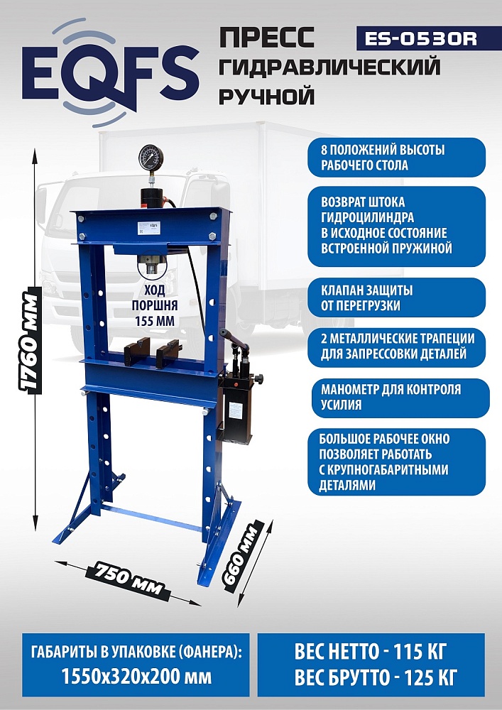 ES-0530R Пресс гидравлический ручной, 30 тонн купить в Челябинске цена ✅ - Все для СТО