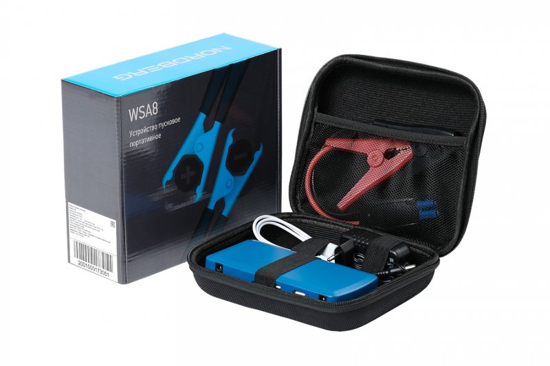 Пуско-зарядное портативное устройство NORDBERG WSA8 – компактная модель для запуска двигателя легковых автомобилей и мототехники с разрядившейся АКБ, а также зарядки аккумуляторных батарей.