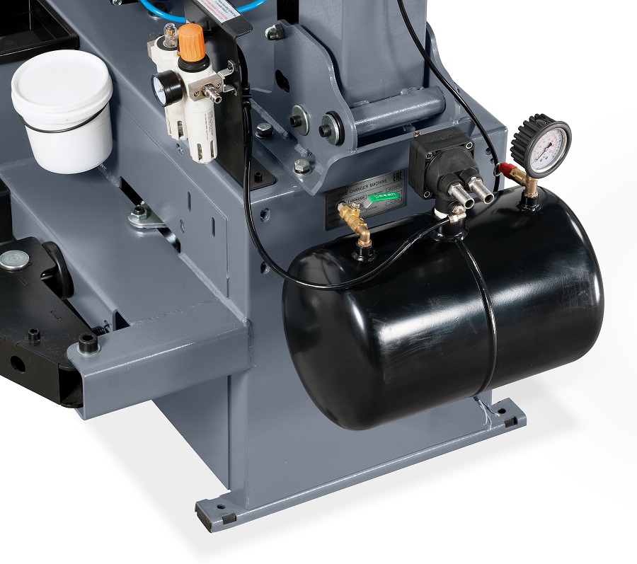 Станок оснащен емокстью для сжатого воздуха (бустер). Для быстрой посадки низкопрофильных шин на диск, достаточно дополнительно оснастить пистолетом для взрывной начкачки - IT-GUN.