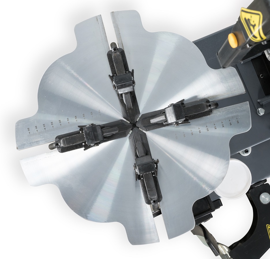 Поворотный стол специальной формы с самоцентрирующимся четырехчулачковым механизмом зажима дисков надежно фиксирует колеса диаметром до 1040 мм.