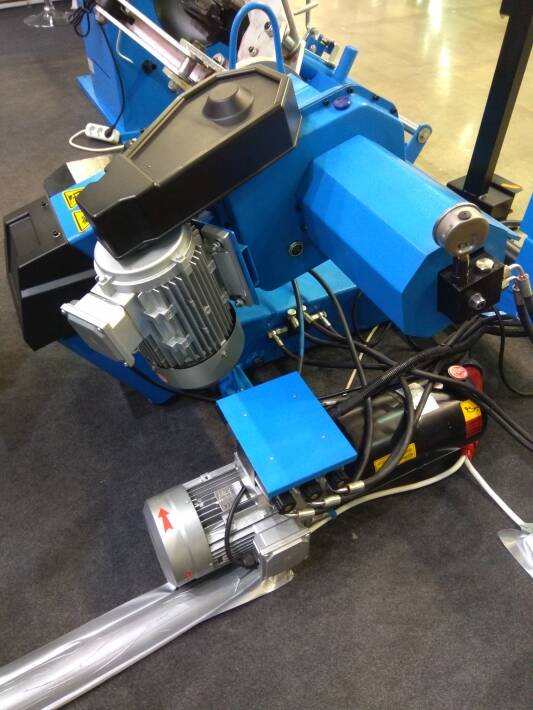 Станок шиномонтажный для колес грузовых автомобилей и автобусов, 2,2+2,2 кВт, 380 В, диаметр дисков 14-42", максимальный диаметр колеса 2300 мм (90"), ширина колеса до 1050 мм (41"), вес колеса до 1200 кг., универсальный 4-х кулачковый зажим, мобильная стойка управления. Может использоваться с камерными и бескамерными колесами.