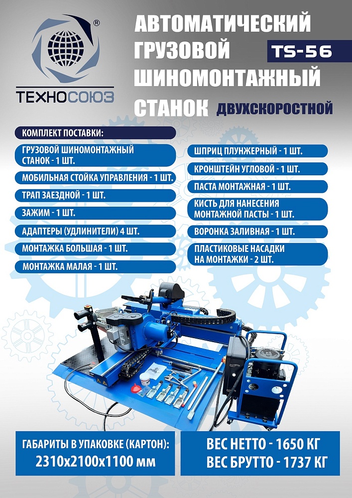 TS-56 Грузовой шиномонтажный станок до 60”, 380В. купить в Челябинске цена ✅ - Все для СТО