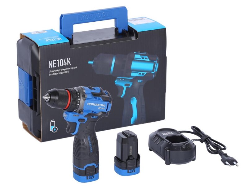 Шуруповерт аккумуляторный макс.диам. сверла 10 мм, 16 В, 60 Нм с 2 аккумуляторами и зарядным уст-вом NORDBERG NE104K купить в Челябинске цена ✅ - Все для СТО