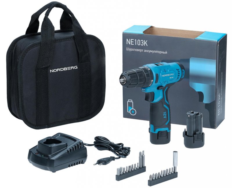 Шуруповерт аккумуляторный NORDBERG NE103K+NE9012 – универсальный инструмент для работы с крепежными элементами в автосервисах, производственных предприятиях, для профессиональных строительных работ, домашнего использования и пр.