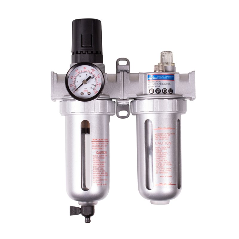 Блок подготовки воздуха: регулятор давления с фильтром, лубрикатором и манометром, 1/2".