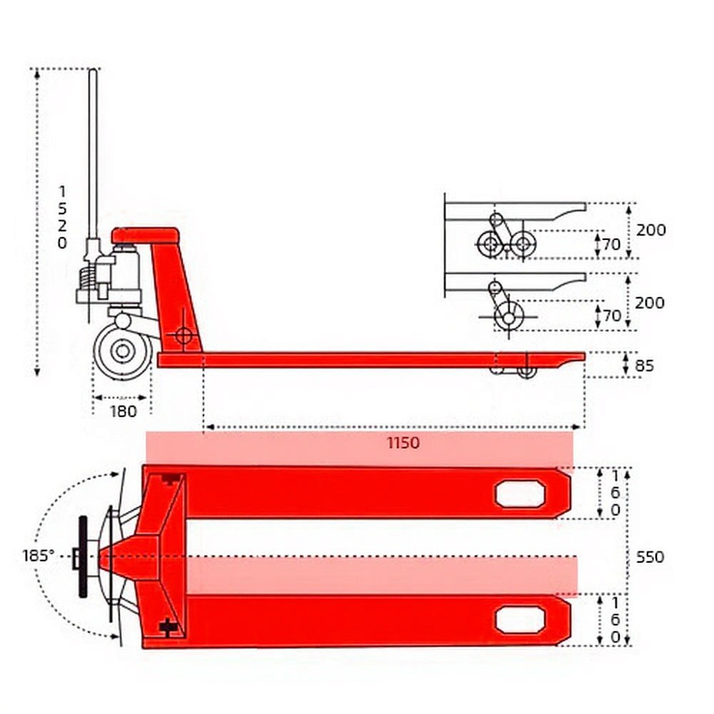 Высота подъема вил 195 мм
