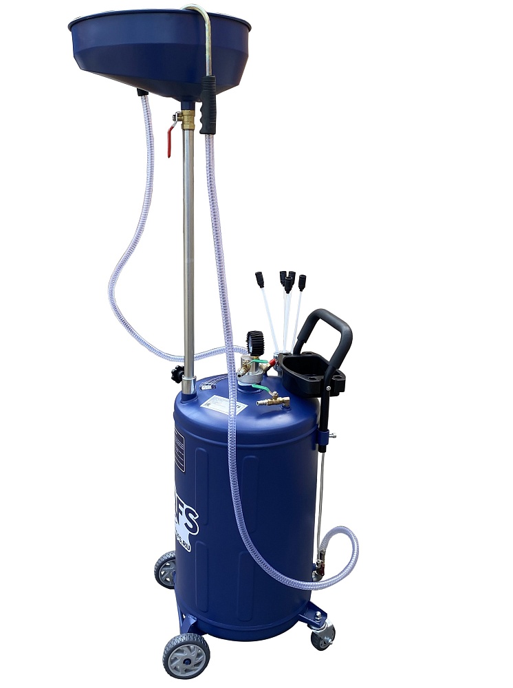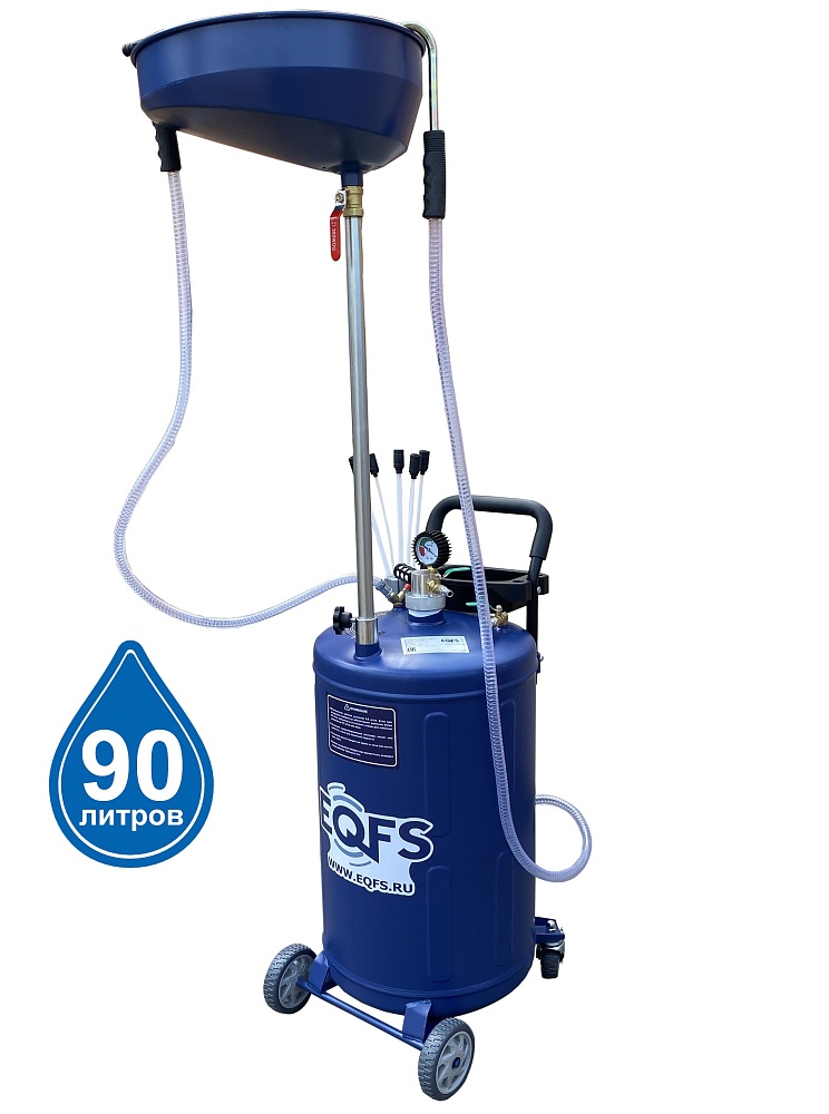 Установка для слива/откачки масла через щупы. Регулировка высоты чаши 970-1570мм. Комплектация: щупы - 5 гибких разного диаметра, манометр (давление/вакуум), лоток, прозрачная трубка для контроля «отработки» в баке. Подключение к пневмолинии - быстросъём. Ёмкость 90л. = Бак 80л + сливная воронка 10л.